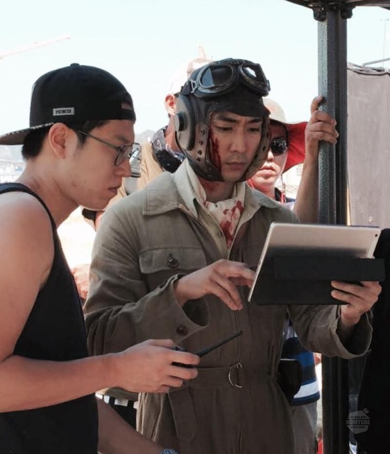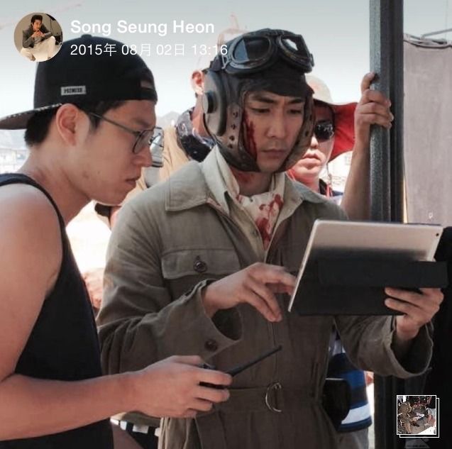 酷暑天气下,宋承宪还能淡定地戴着飞行皮帽,身穿全套飞行服讨论着拍摄方案,令人佩服![赞]