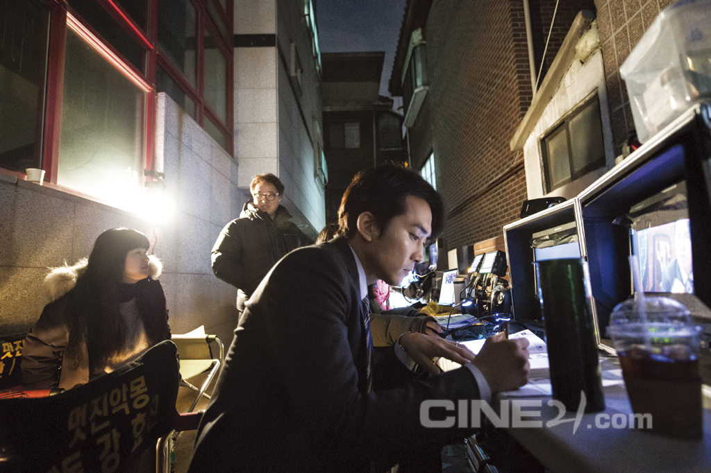 ‘模範生’宋承憲攝影剛剛結束在監視器中厚厚的劇本上努力作著筆記。“碰到了想要演出的意外的角色的劇本”熱情燃燒著。導演表示“不想打破他美男演員的形象,不過他準備非常多的即興表演”!