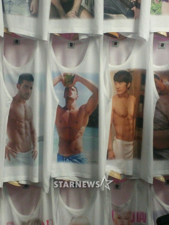 提到泰國曼谷夜市((Patpong night bazaar)被稱為觀光客樂園,走進滿滿地擁擠的貨攤之間,吸引注意的馬上是無袖T恤上打印著演員宋承憲的照片。