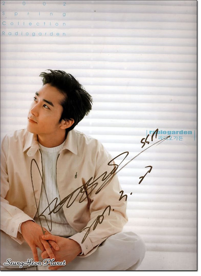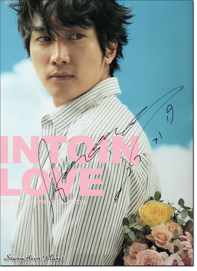 我又一次幾乎是零距離的看著承憲,完美的輪廓,性感的雙唇,挺直的鼻子,漂亮的耳朵......就這樣一直傻傻的看著承憲的臉,好一會兒才回過神來,天啊,目錄和雜誌都很沉的,承憲是一只手托著這些東東在給我簽字,我居然不知道接過承憲已經簽好名的目錄,忙不迭的馬上接過兩本已經簽好名服裝目錄,接下來是日本版的雜誌宋承憲時代,承憲看到這本雜誌更是開心的笑了,給我簽好名後也給xinyu和愛憲之城的漂亮版主MM簽了名.