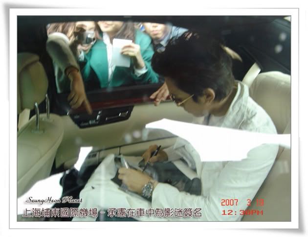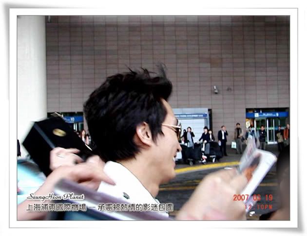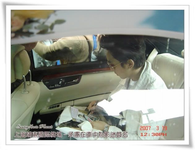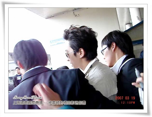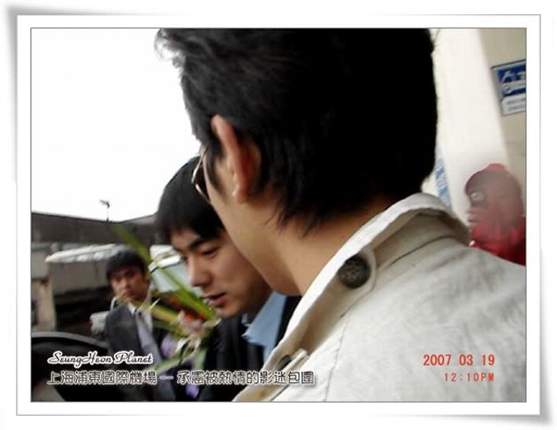 12:00左右,通道的最前面又傳來一片叫聲,這時,我們知道一定是承憲出來了,按捺住心中的狂喜,告訴自己要鎮靜一定要鎮靜,舉起像機對著通道就拍,可是我就是看不到承憲在何方,等我看到承憲的時候他已經快走到我面前了,第一眼看到的承憲讓我很心疼,承憲好瘦好瘦哦,比我去年11月在韓國影迷會見到的時候瘦好多......