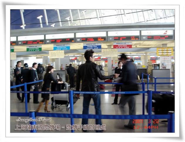 就在這時候beibei打電話過來說,新聞有看到說承憲這次中國行程很緊張,應該會很快回國.在和xinyu溝通後決定一起去機場碰碰運氣,看看能不能送到承憲.如約和xinyu見面馬上搭TASI直奔浦東國際機場國際出發大廳.