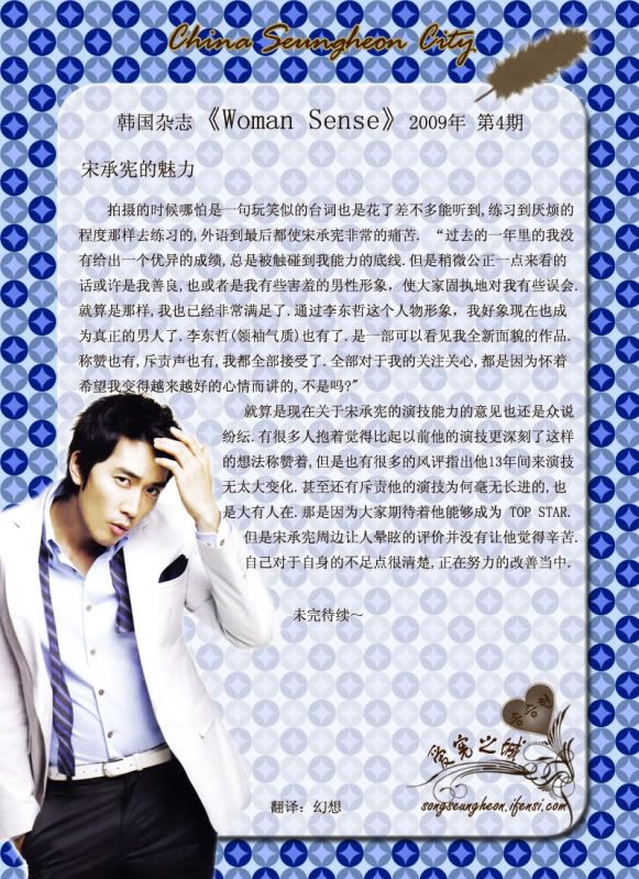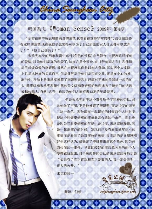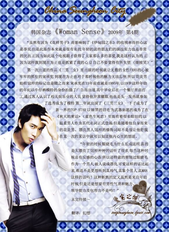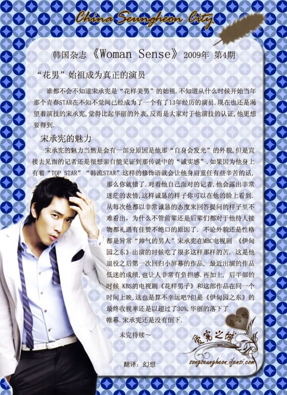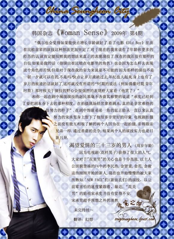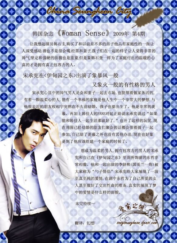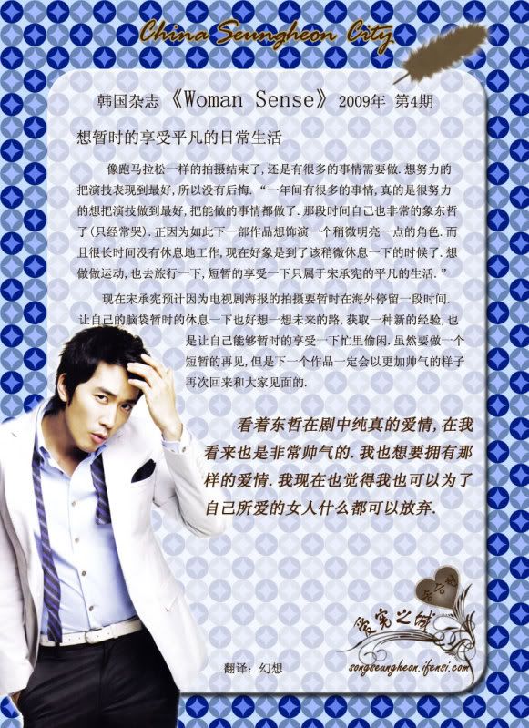 發表發表於: 2009-04-09 08:51 AM    文章主題: [韓國] Woman Sense 4月號-宋承憲的魅力 引言回覆