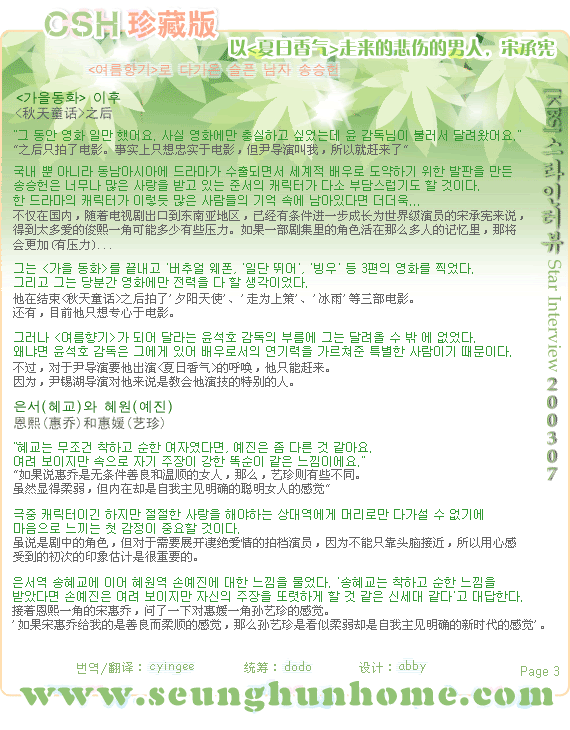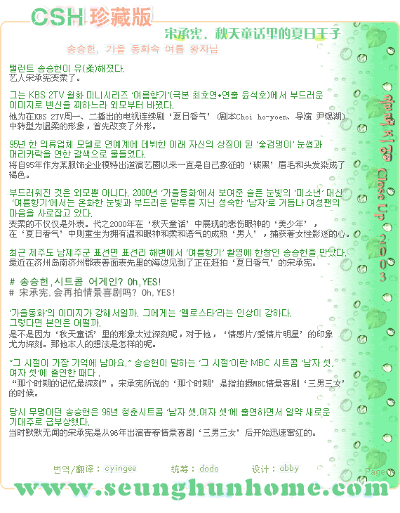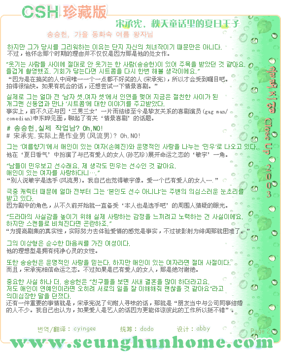[圖文]CSH珍藏版•宋承憲,秋天童話裏的夏日王子 ==> 寫到: