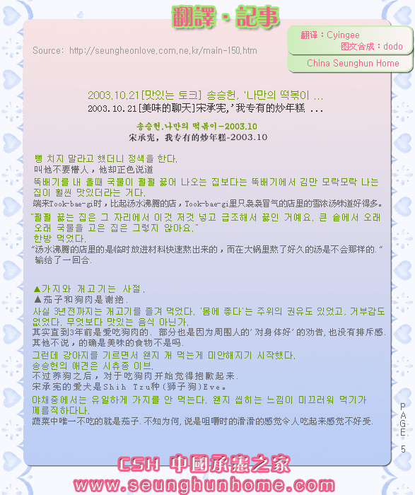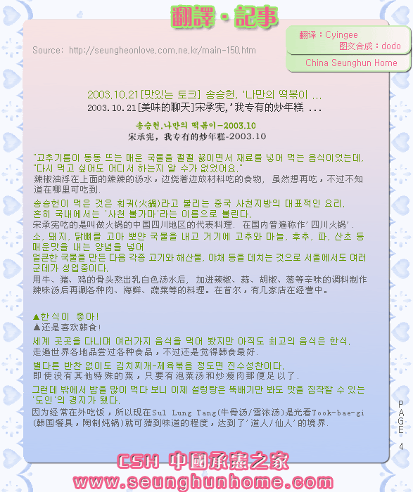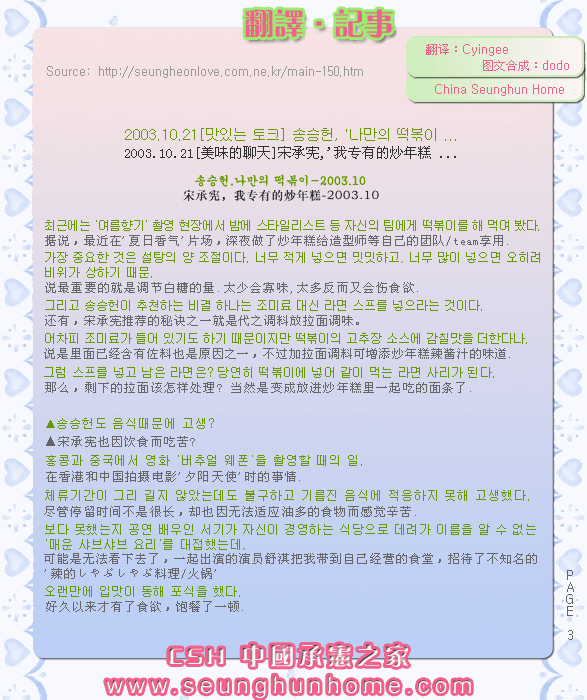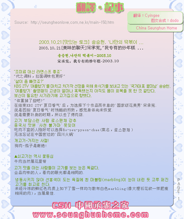 2003.10.21[美味的聊天]宋承宪,'我专有的炒年糕 ...(from CSH)==> 寫到: