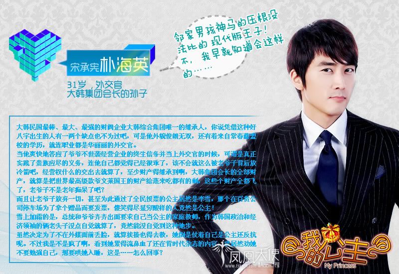 發表發表於: 2011-01-06 01:51 AM    文章主題: 鳳凰天使&承憲星球聯合發佈"我的公主"【凤凰天使高清电视剧 My Princess 720P内嵌中字 全集】 引言回覆