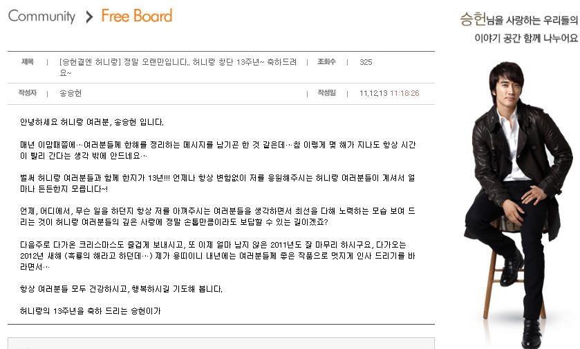 文章主題: [承憲20111213官網留言]SSH真是好久不见了,honeylang创立13周年祝贺喔