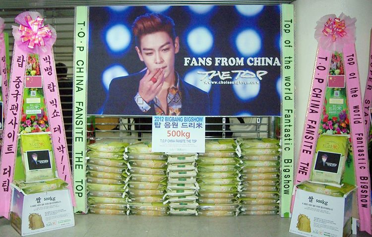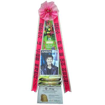 ▶产品描述 : 大米 20 KG,2条条幅 (左:发件人或粉丝俱乐部的名称 右:加油助威信息),歌手或演员的画报一张(40cm X 55cm)