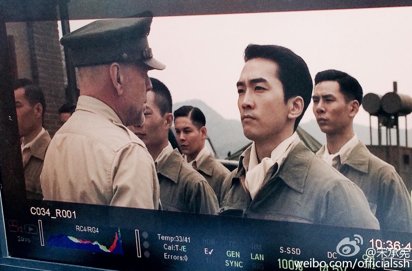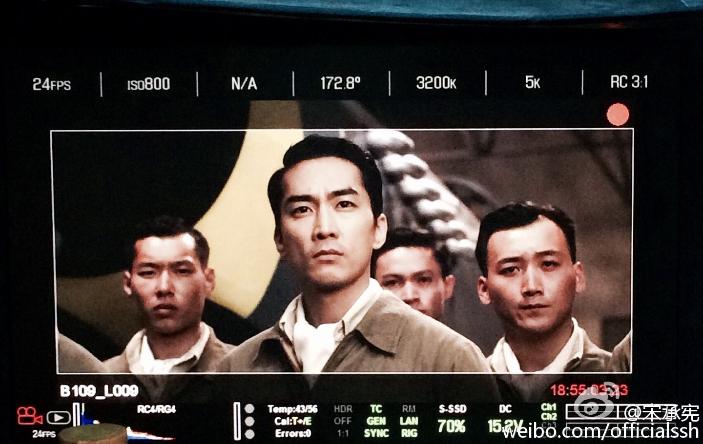 6月29日,演员宋承宪通过微博上传了一组拍摄电影新片《大轰炸》的现场照片,吸引众粉丝的视线。