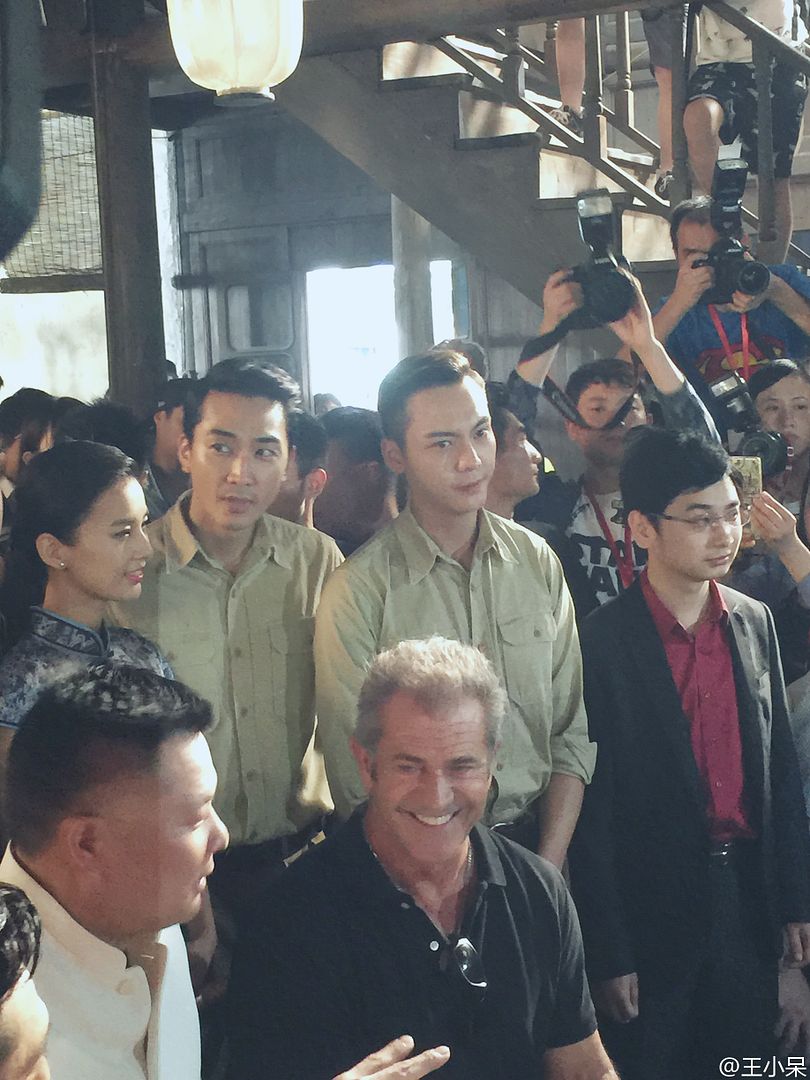 笑裂了的陈伟霆,突然冒出来卖萌的刘烨。给梅尔吉布森当翻译的张钧甯。和陈等等拍了一张自拍,他还挺配合。